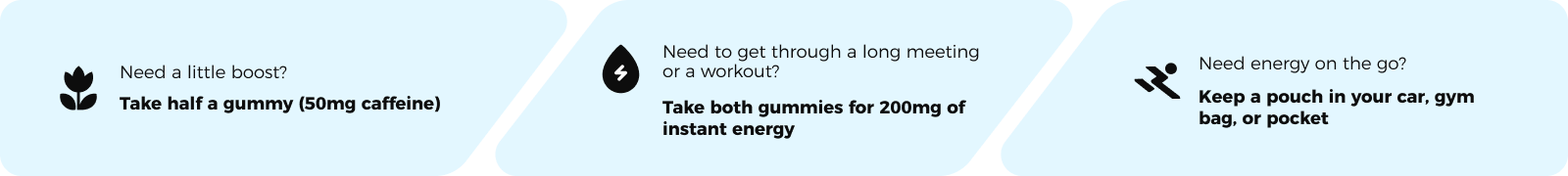 Each gummy contains 100mg of caffeine. A 2-gummy pack = 200mg.